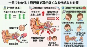 この記事では、飛行機で耳が痛くなる原因を分かりやすく解説し、すぐにできる対策も紹介します。